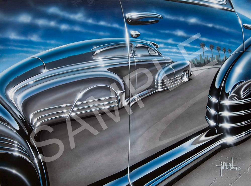 Mike Pickel “BOMB FLEETINE” giant size poster 23″X17″ brand new 2013 release. Chevrolet Lowrider BOMB FLEETLINE cruising with the reflection of another BOMB FLEETLINE cruising right next to it. This is truly Mike Pickel BOMB art at its’ best! High quality full color, suitable for framing. Display in your garage, man cave, or in your home. Original artwork by World Famous Lowrider Artist, Mike Pickel.